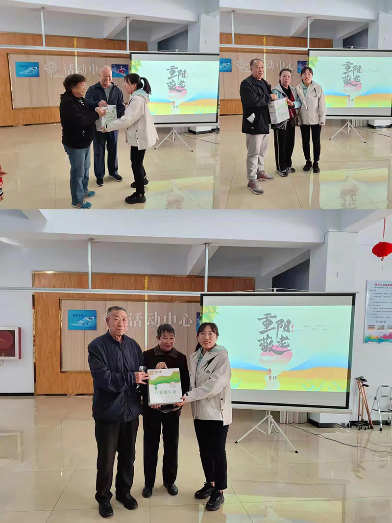 接着,幸福街第二社区的武文静书记为老人们送上了由宣化慈善义工联合会提供的牛奶,每人一箱。武书记表示,在重阳节这个特殊的日子里,希望通过这样的活动,让老人们感受到社会的关爱和温暖。她还呼吁大家要传承和弘扬敬老爱老的传统美德,让老人们能够安享晚年。老人们接过牛奶,纷纷表示感谢。他们说,在这个节日里,能够收到这样的礼物,感到非常温暖和幸福。