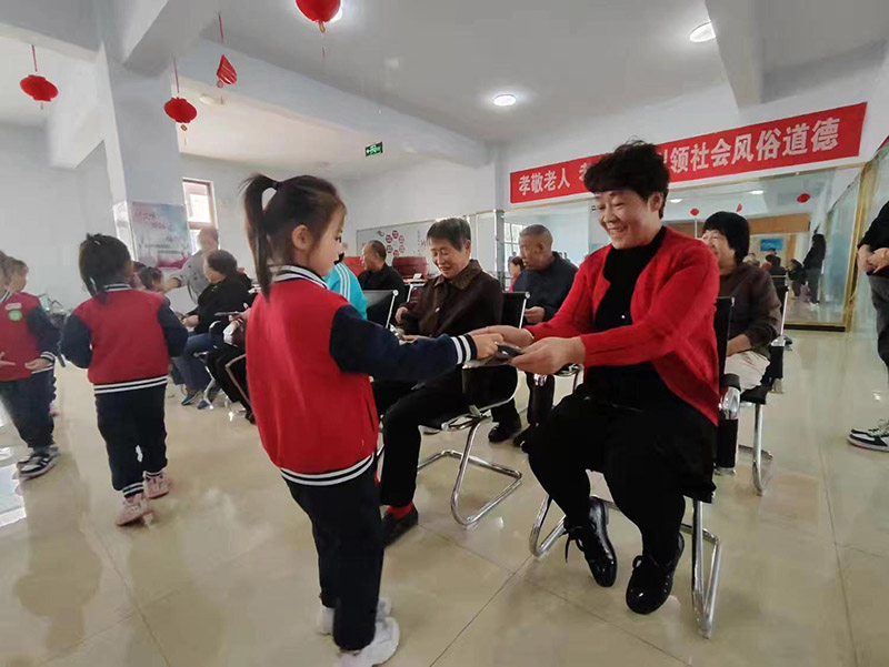 表演结束后,小朋友们纷纷走到老人身边,为他们送上贴心的手套。这些手套虽然不贵重,但却饱含着孩子们对老人的关爱之情。老人们接过手套,感动不已,有的老人甚至眼眶湿润。他们紧紧地握住小朋友的手,不停地说着感谢的话。这一刻,老少之间的温情在活动室内流淌,让人感受到了浓浓的人间真情。