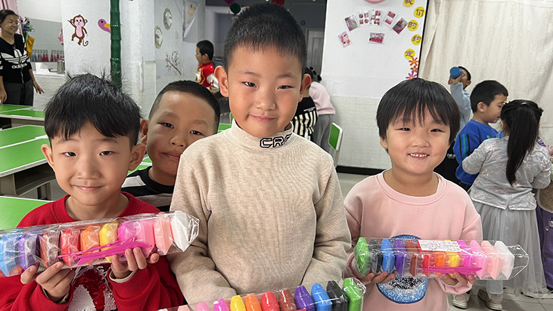开场舞结束后,学前班的小朋友们带来了精彩的舞蹈表演。他们穿着可爱的服装,像一群小天使般在舞台上翩翩起舞。那稚嫩的动作、纯真的笑容,让在场的每一个人都为之动容。他们用自己的方式表达着对志愿者们的欢迎和感谢,也展现出了孩子们的天真无邪和朝气蓬勃。猜谜语送彩泥的活动更是将气氛推向了高潮。志愿者们精心准备了各种有趣的谜语,孩子们积极踊跃地参与其中。每当有小朋友猜出谜语,志愿者们就会送上一份精美的彩泥作为奖励。孩子们拿着彩泥,脸上露出了自豪的笑容。这个环节不仅让孩子们在游戏中锻炼了思维能力,还增进了他们与志愿者之间的互动和交流。
