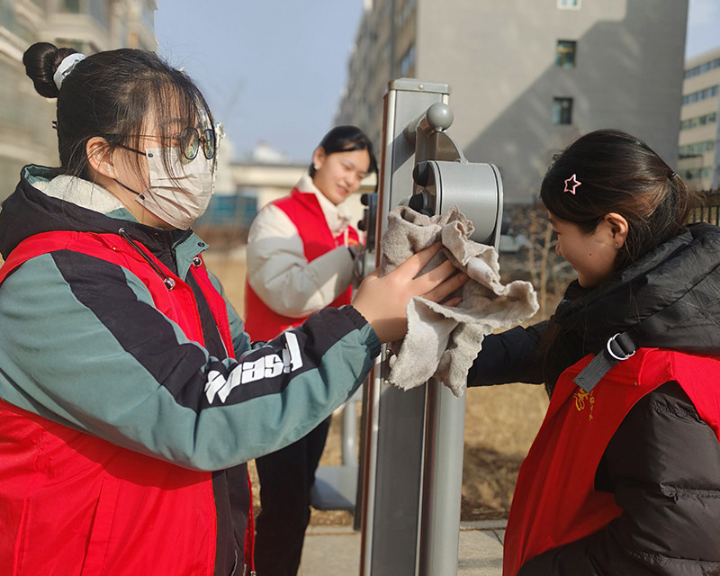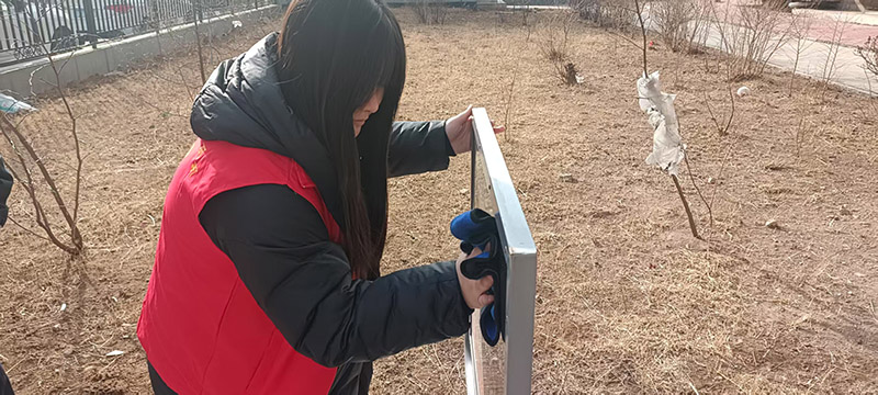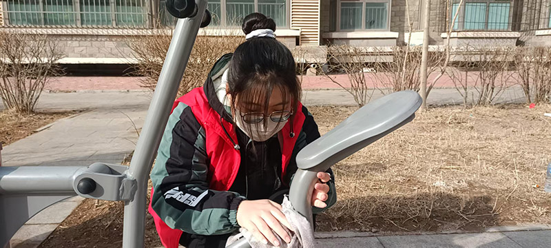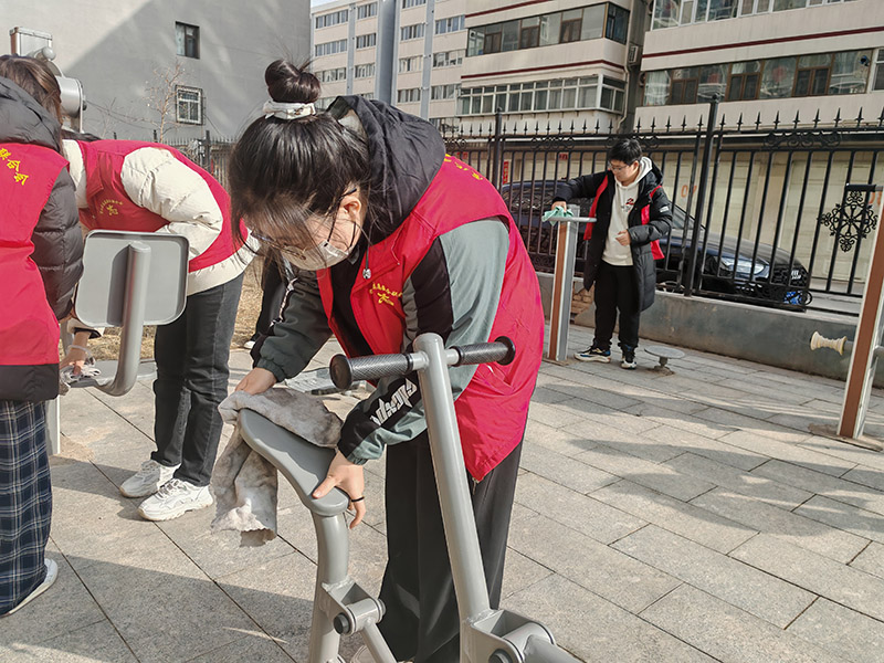 活动伊始,志愿者们迅速集结,兵分两路,奔赴各自的“战场”。前往万柳社区健身活动点的志愿者们热情高涨,干劲十足。他们手持清洁工具,仔细地擦拭着健身器材和休息长椅。每一个角落、每一处缝隙,都不放过,力求将这些公共设施清理得一尘不染。与此同时,另一部分志愿者则弯下腰,认真清理着周边地面的烟头、纸屑和包装袋等垃圾。他们用自己的双手,一点点地为居民们打造出一个干净整洁的健身休闲空间,让前来锻炼、休憩的居民能够尽情享受这份清新与舒适。