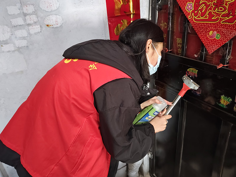 活动伊始,在武文静书记的统筹规划下,大家准时在幸福街第二社区集合,精神饱满、热情高涨,迅速领取铲刀、喷壶、抹布、垃圾袋等清洁工具。宣化慈善义工联合会秘书长韩智刚与宣科院青协副主席康星宇充分发挥骨干作用,与社区工作人员默契配合,精准划分责任区域,聚焦社区楼道墙面、单元门、电线杆、宣传栏等公共区域,对各类违规张贴、喷涂的垃圾广告开展“地毯式”清理,确保活动有序高效推进。