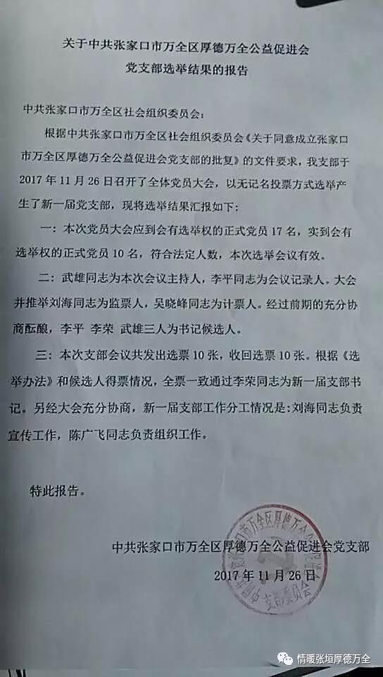 中共张家口市万全区厚德万全公益促进会党支部成立大会