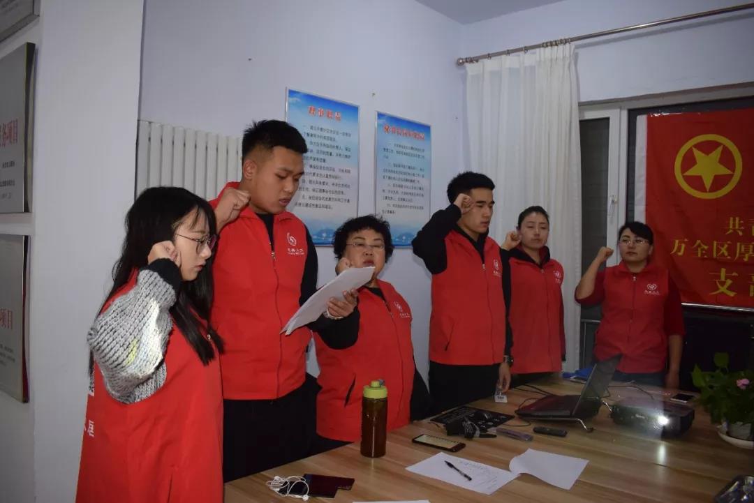 厚德万全党支部宣传委员郭晶晶,副理事长张秀娟,妇联副主席姚万红号召青年志愿者要加强理论学习,以理论指导实践活动,传播志愿文化,争当先锋模范作用;厚德万全团支部书记郭婷婷,组织委员李丽媛,宣传委员梁爱桃表示今后要带领支部委员会成员学习党的路线、方针和政策,用激情和智慧编织公益事业美好未来。
