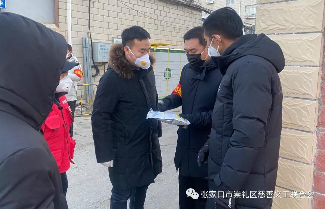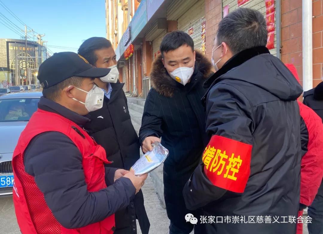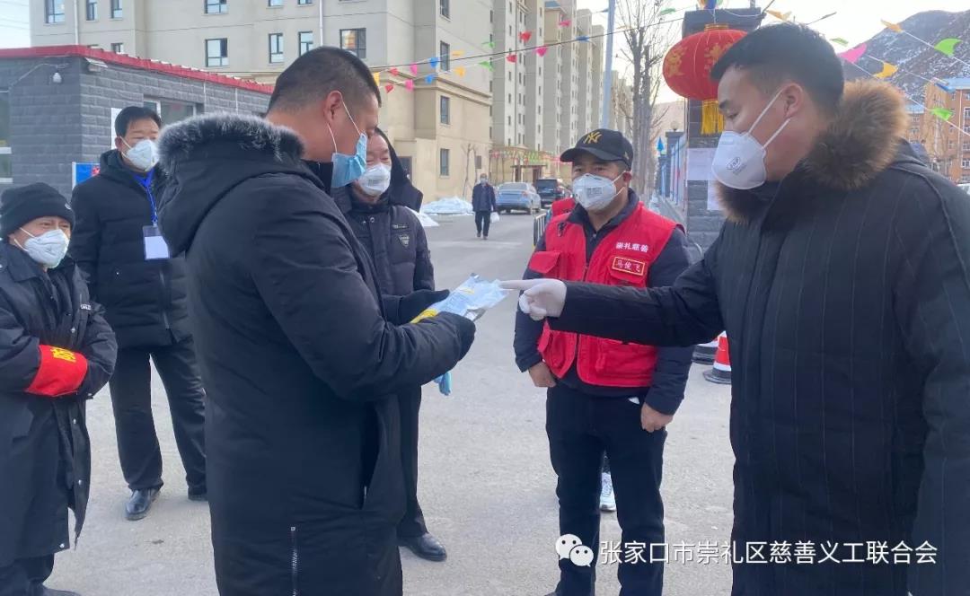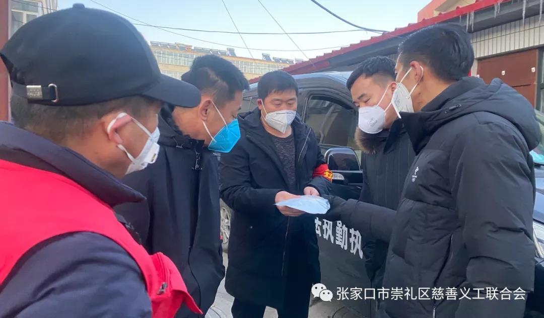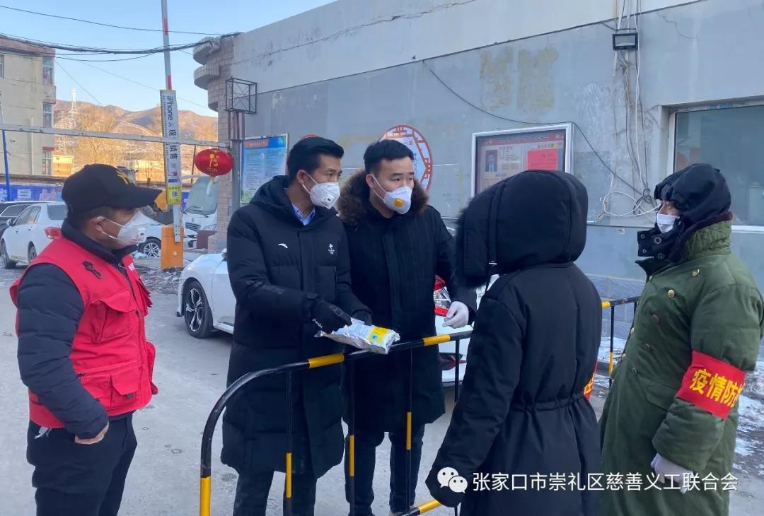 2020年2月7日下午,张家口市崇礼区慈善义工联合会联合区委非公经济和社会组织工委向防疫在崇礼区一线执勤者们捐赠抗疫暖心物资。