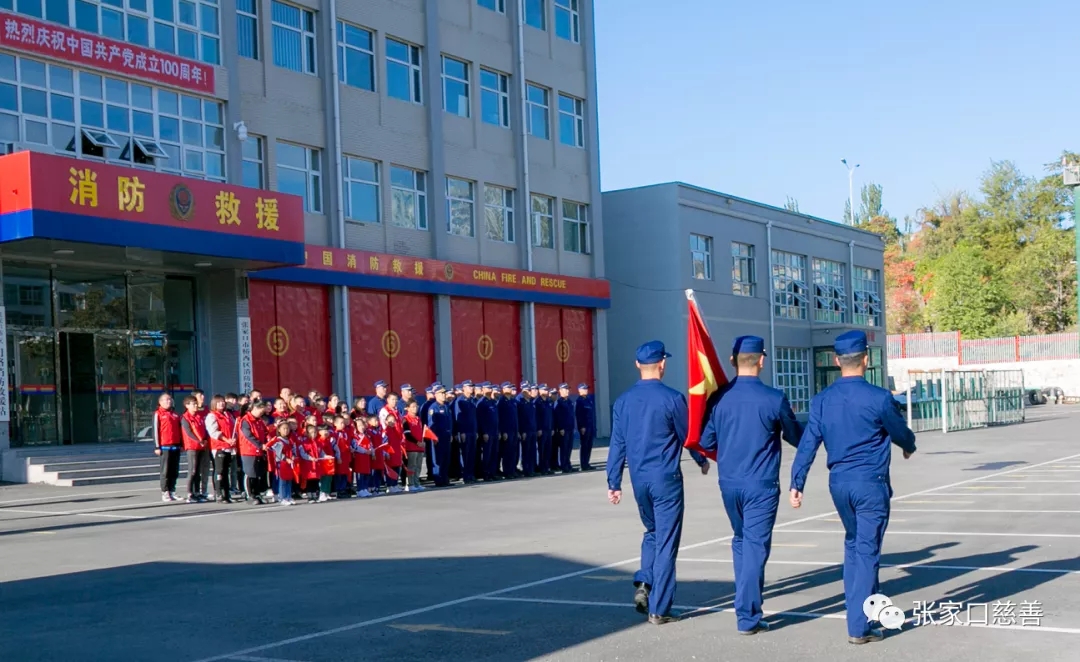 10月1日早上8点,张家口桥西区消防救援大队,中共张家口慈善义工联合会第四支部委员会、张家口红旗楼小学雷锋分队,庆祝中华人民共和国成立72周年升国旗仪式在桥西区消防救援大队院内举行。20余名志愿者,30余名消防官兵,20余名师生代表庄严肃立,满怀激情,用升国旗的方式表达对祖国的热爱和祝福。