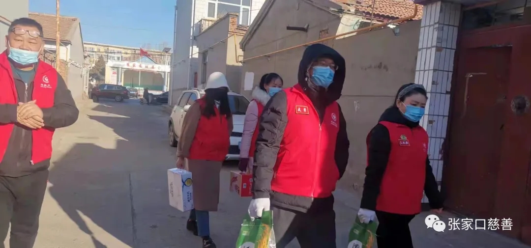 义工队的志愿者带着捐赠物资前往受助者家中