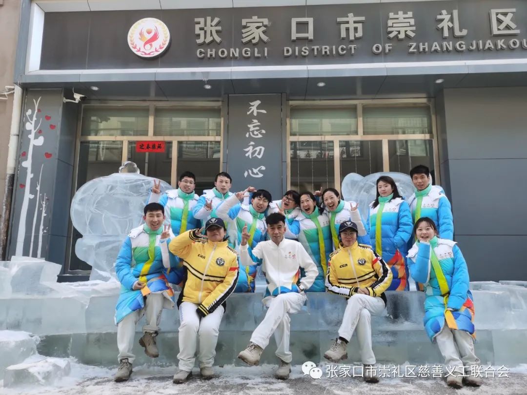 为了丰富冬奥城市志愿者们的业余生活,也为了给志愿者们在冬奥会执勤期间留下一些美好的回忆, 张家口市崇礼区慈善义工联合会会长张华出钱、出力耗时一周请来雕冰专业人士在联合会门口雕刻“冰墩墩”、“雪容融”还有“雪如意”。