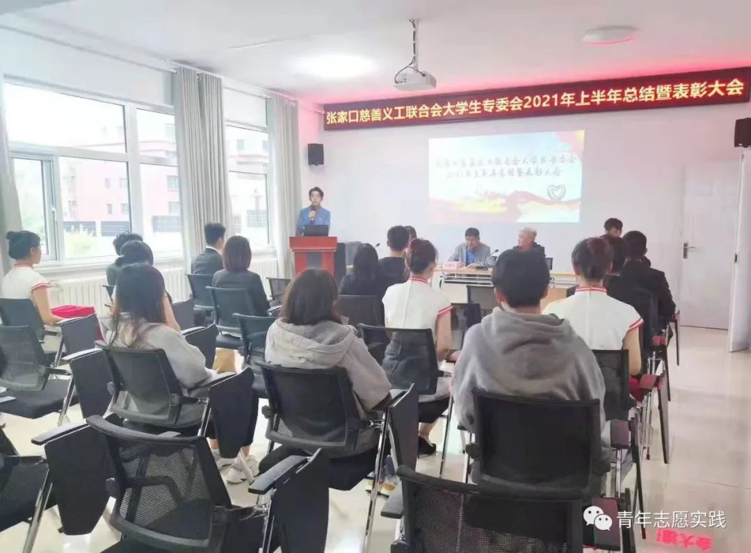 2021年9月26日下午,张家口慈善义工联合会大学生专委会在张家口市桥西区岭秀城社会组织孵化中心二楼会议室召开了2021年上半年总结暨表彰大会,此次大会对上半年的工作做了总结,并对大学生专委会上半年表现突出的个人和团队进行表彰。