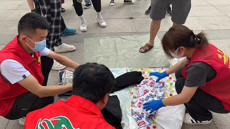 居民们纷纷拿着家中的不穿的衣服前来捐赠,同时也会依照捐赠的数量获得相应的印有公益大篷车字样的小礼物。活动现场热闹而有序,居民们对这样的活动表示支持,还要求经常开展,志愿者们耐心的解答居民提出的问题。同时社区工作人员和志愿者们现场为居民宣传防疫知识反诈知识等。