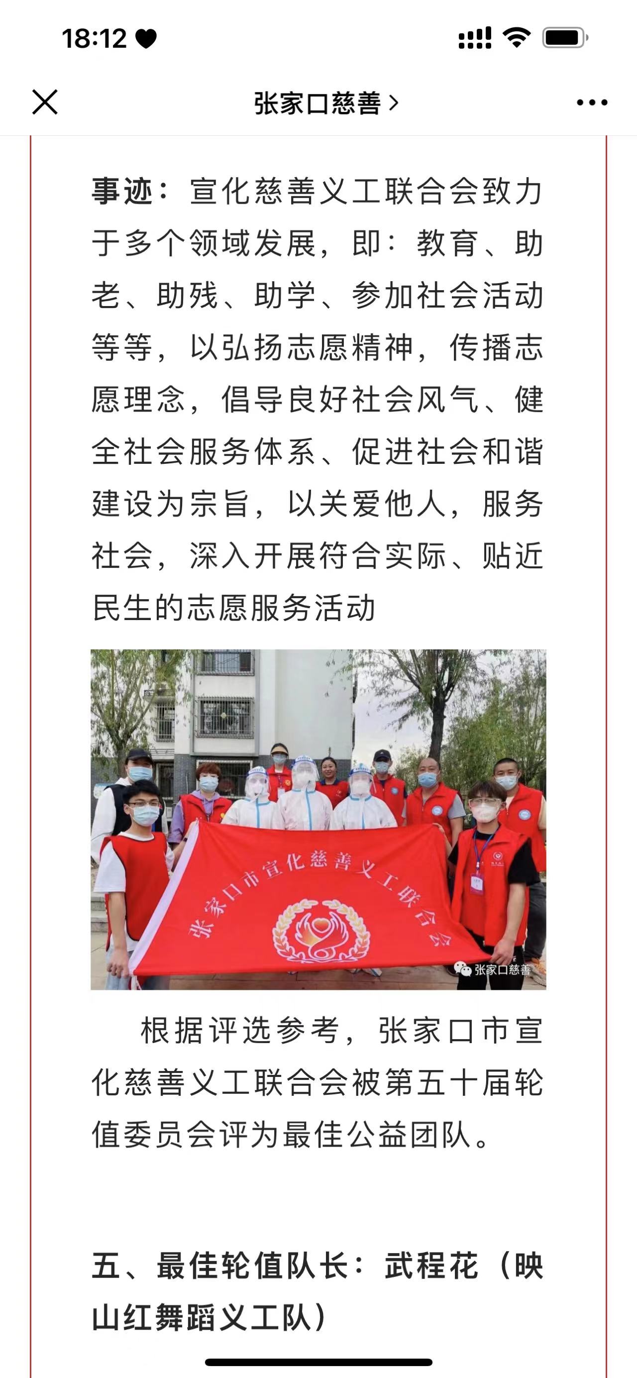 根据评选参考,张家口市宣化慈善义工联合会被第五十届轮值委员会评为最佳公益团队。