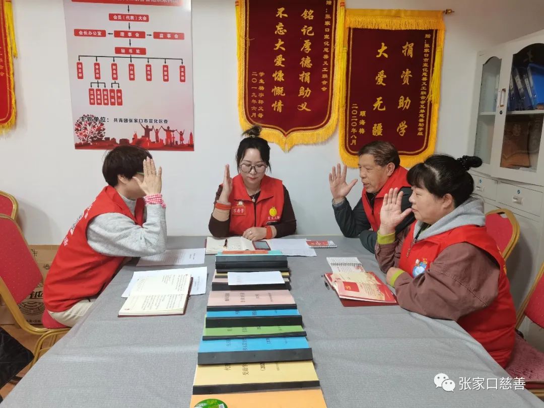2023年4月23日上午,宣化慈善义工联合会党支部在宣化慈善义工联合会办公室召开支部大会。党员苏存芳、郭建斌、郎丽琴、张佳莉, 以及发展对象张秀芳参加了会议。会议由党支部书记苏存芳主持。