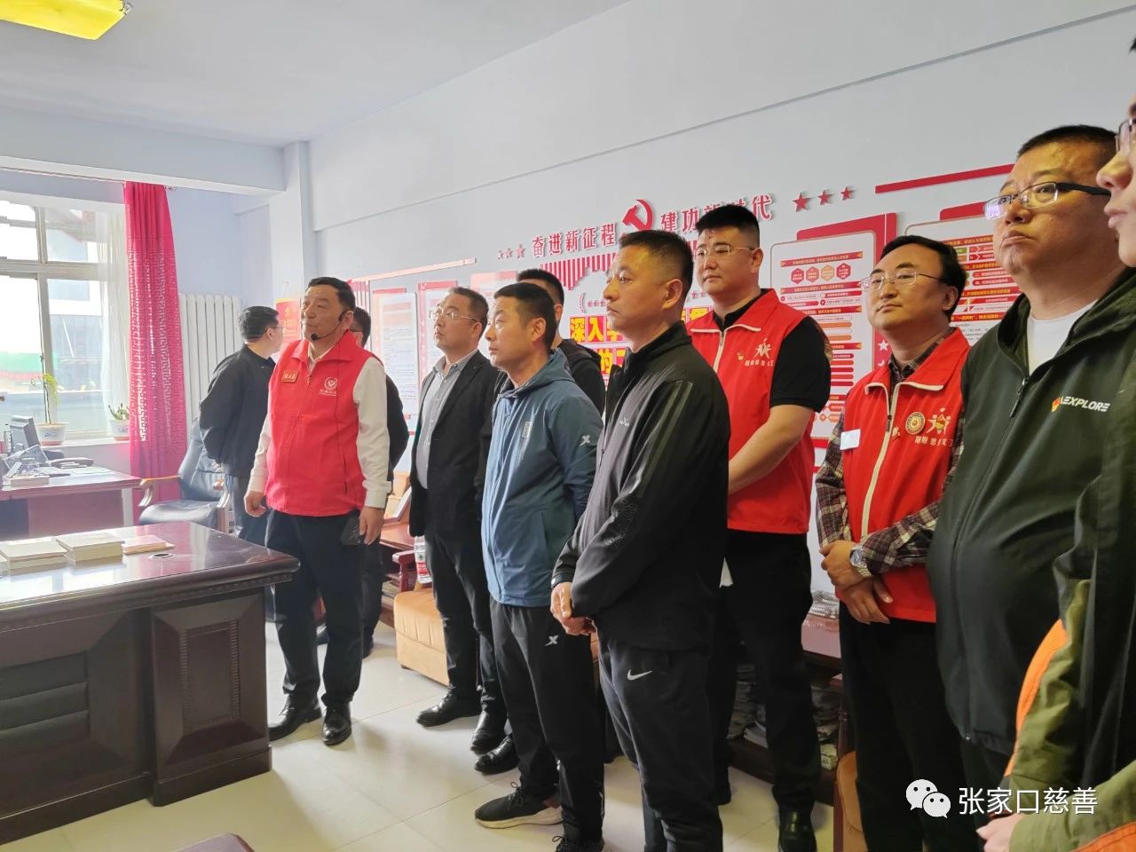 刘立东会长带领大家参观了办公场所,介绍了阳慈联党建红色文化与家乡本土文化相结合的做法,并对如何激发志愿者热爱家乡和奉献社会的情怀提出自己的思路和想法。