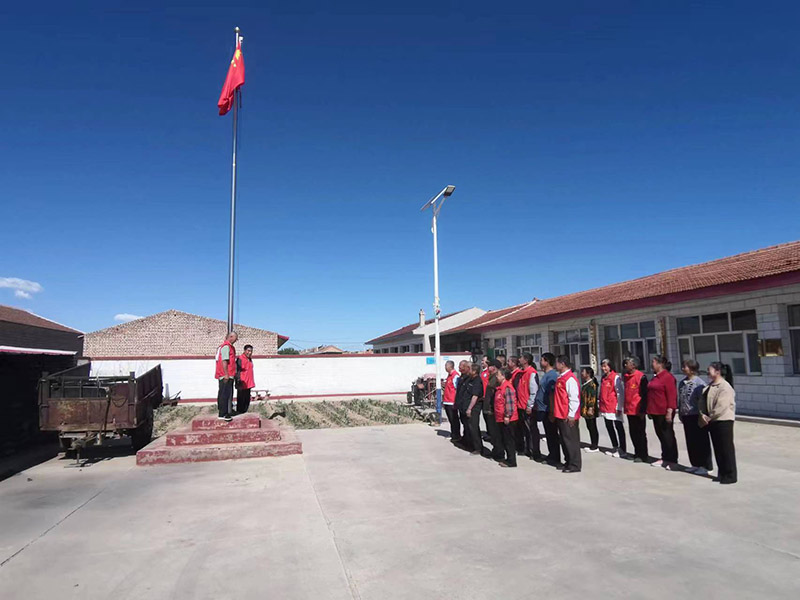 首先两个党支部党员、志愿者30多人一起在村委会举行了庄严的升国旗唱国歌仪式,各位党员和志愿者嘹亮的国歌声响彻村委会大院。在会议室,柳树皂村党支部书记常英俊与贾宪书记、老干部鲍玉珂、老干部梁成山等亲自为村里的六位老党员又一次佩戴党徽,让老党员们感受党的温暖与关怀。