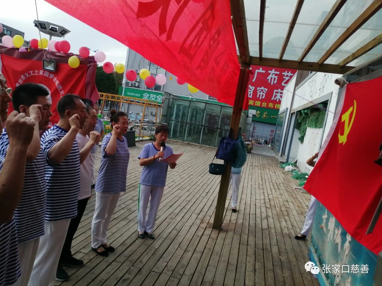 3、义工队副队长张风华带领全体圆梦合唱团义工队员面向队旗进行了志愿者誓词宣誓。