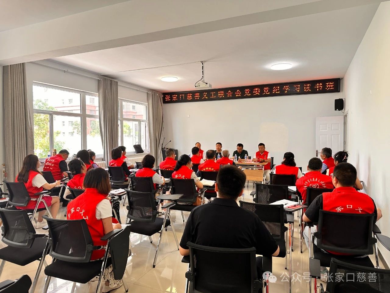6月13日,张家口慈善义工联合会党委举办党纪学习教育读书班,深入学习贯彻习近平总书记关于党纪学习教育的重要讲话、重要指示精神和中央部署要求,认真学习领会新修订的《中国共产党纪律处分条例》(以下简称《条例》)。市委社工部三科科长王利锋参加并讲话,市慈善义工联党委书记贾庆贺,党委副书记冀桂宝、夏栩飞、党委成员刘立东、孙小建,党支部书记,工会、共青团、妇联、自律委员会代表参加读书班。
