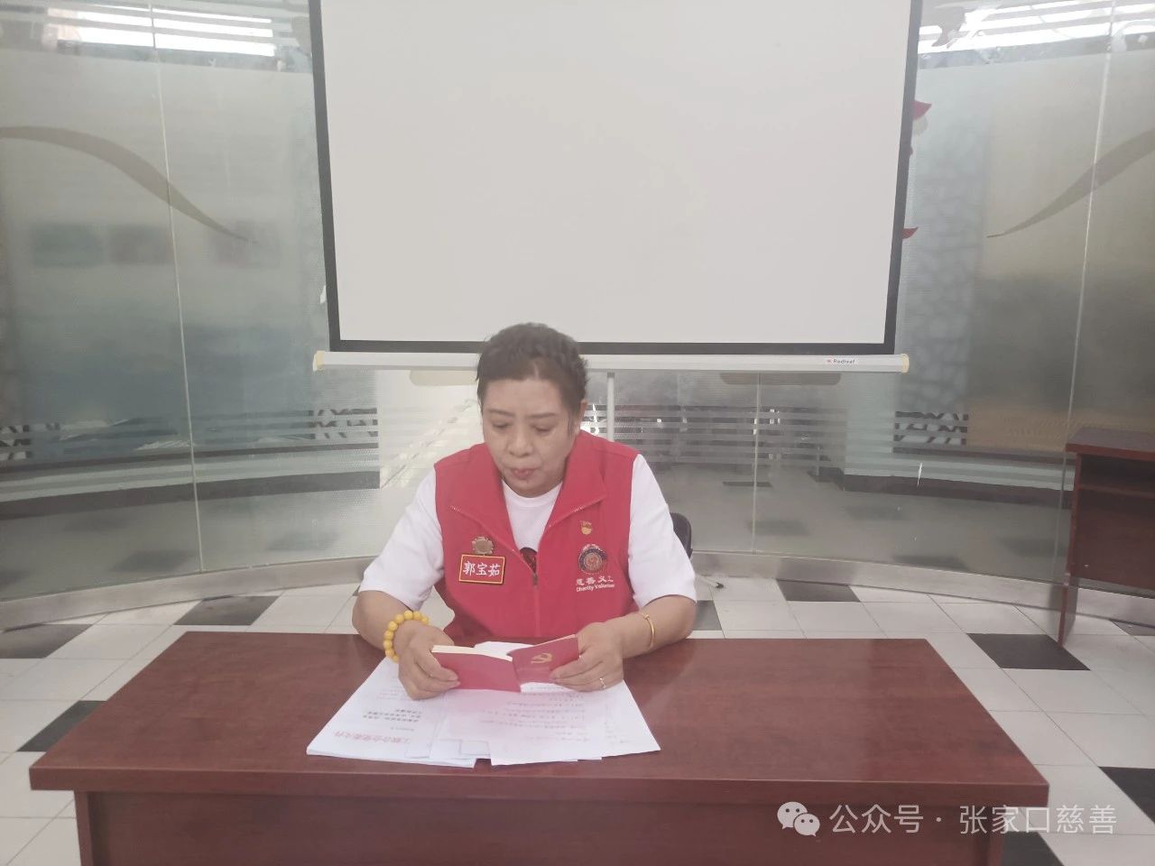 6月22日,张家口慈善义工联合会第五党支部在金鼎社区会议室召开了党员大会。会议由党支部书记杜同会同志主持,党员郭宝茹、姬丽威、李想及入党积极分子陈素萍、特邀利他义工之家队长李尚林参加了会议。