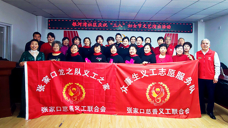 2025年3月5日下午,为庆祝第115个“三八”国际妇女节,丰富社区女性精神文化生活,展现新时代女性风采,众康生义工志愿服务队、银河湾社区党支部在社区活动中心联合举办了一场别开生面的庆“三八”国际妇女节慰问演出活动。众康生义工志愿服务队、银河湾社区党支部、张家口龙之队义工之家的60余名志愿者、社区工作人员、居民欢聚一堂,共同庆祝属于女性同胞的节日。