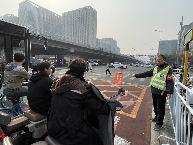 在志愿者们的共同努力下,官园桥路口呈现出一片畅通无阻、秩序井然的景象。车辆有序行驶,行人文明过马路,构成了一幅和谐美好的画面。更为重要的是,我们成功保障了“两会”车队顺利安全通过路口。那一刻,所有的辛苦付出都化作了满满的欣慰与自豪。
