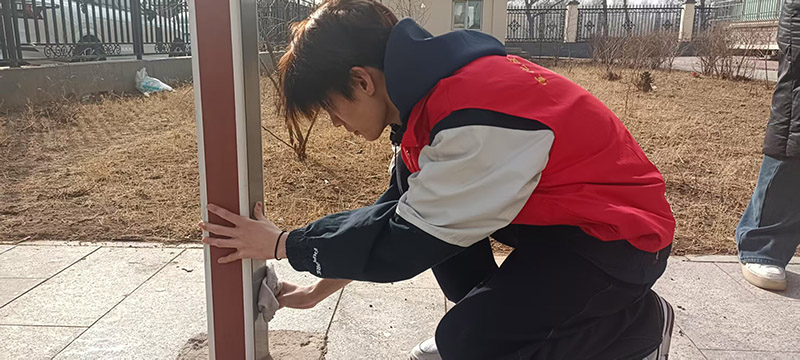 活动伊始,志愿者们迅速集结,兵分两路,奔赴各自的“战场”。前往万柳社区健身活动点的志愿者们热情高涨,干劲十足。他们手持清洁工具,仔细地擦拭着健身器材和休息长椅。每一个角落、每一处缝隙,都不放过,力求将这些公共设施清理得一尘不染。与此同时,另一部分志愿者则弯下腰,认真清理着周边地面的烟头、纸屑和包装袋等垃圾。他们用自己的双手,一点点地为居民们打造出一个干净整洁的健身休闲空间,让前来锻炼、休憩的居民能够尽情享受这份清新与舒适。