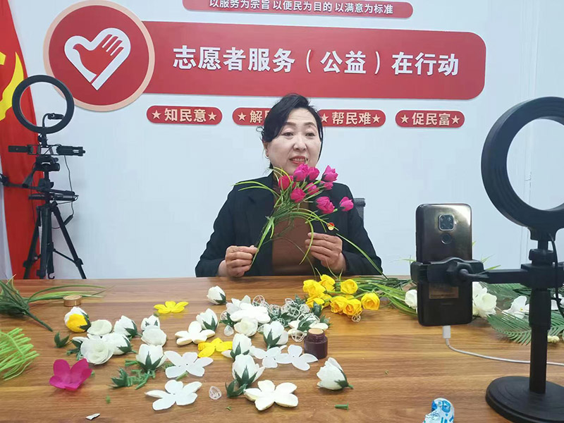 此次培训由春风助残义工队的志愿者们精心组织,采用直播等线上线下融合的方式开展近百场活动。培训内容紧密贴合厂家需求,志愿者们从基础的材料认识、工具使用讲起,逐步深入到花瓣形状塑造、色彩搭配,再到复杂的花枝组装,每一个步骤都进行详细拆解与示范,确保参与培训的妇女能够熟练掌握制作技巧。