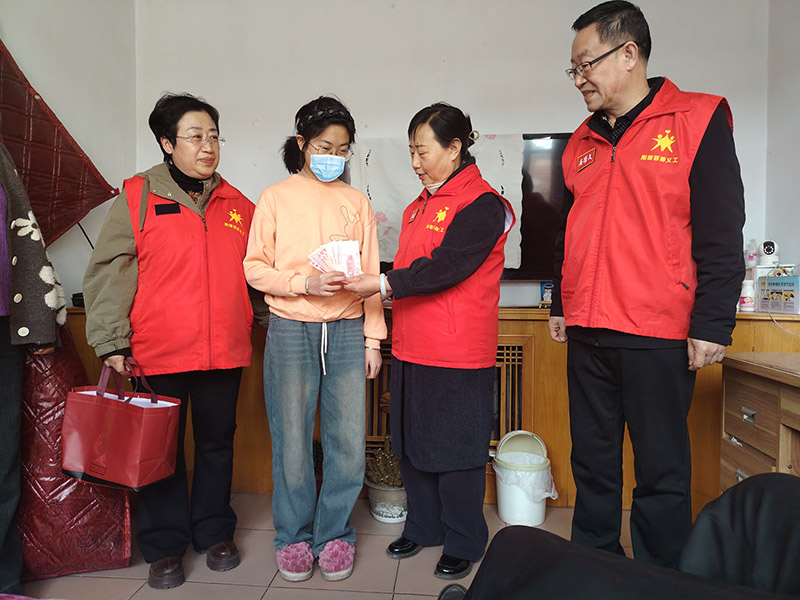 2025年3月30日下午,春日暖阳倾洒而下,为大地披上一层金色的薄纱。就在这样美好的日子里,春风送暖爱心队的帅振兰、马雅琴、安耀文以及工会副主席牛树清一行四人,带着满满的关怀与温暖,来到了小雯同学的家中。他们此行肩负着特殊的使命——为小雯发放 1200 元助学金,落实“暖阳代理爸妈一对一”活动计划。这一笔助学金,承载着社会各界对学子的殷切期望。