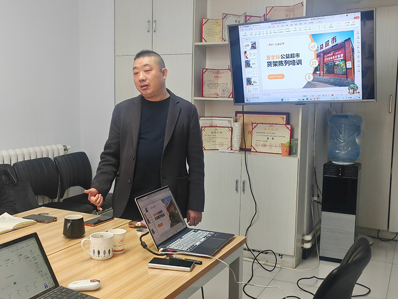 首先,臧沙沙介绍了爱坐标公益超市的运营模式、公益理念及志愿者注册流程,帮助店员深入理解超市的公益属性及社会价值。随后,运营经理王雅岚就收银系统操作规范和货架陈列技巧进行了专业讲解,让店员掌握标准化作业流程。最后,采购负责人李钦峰针对日常商品陈列及销售过程中的常见问题,结合实例,分享了系统化的解决方案,有效提升了店员的销售技巧和应急处理能力。
