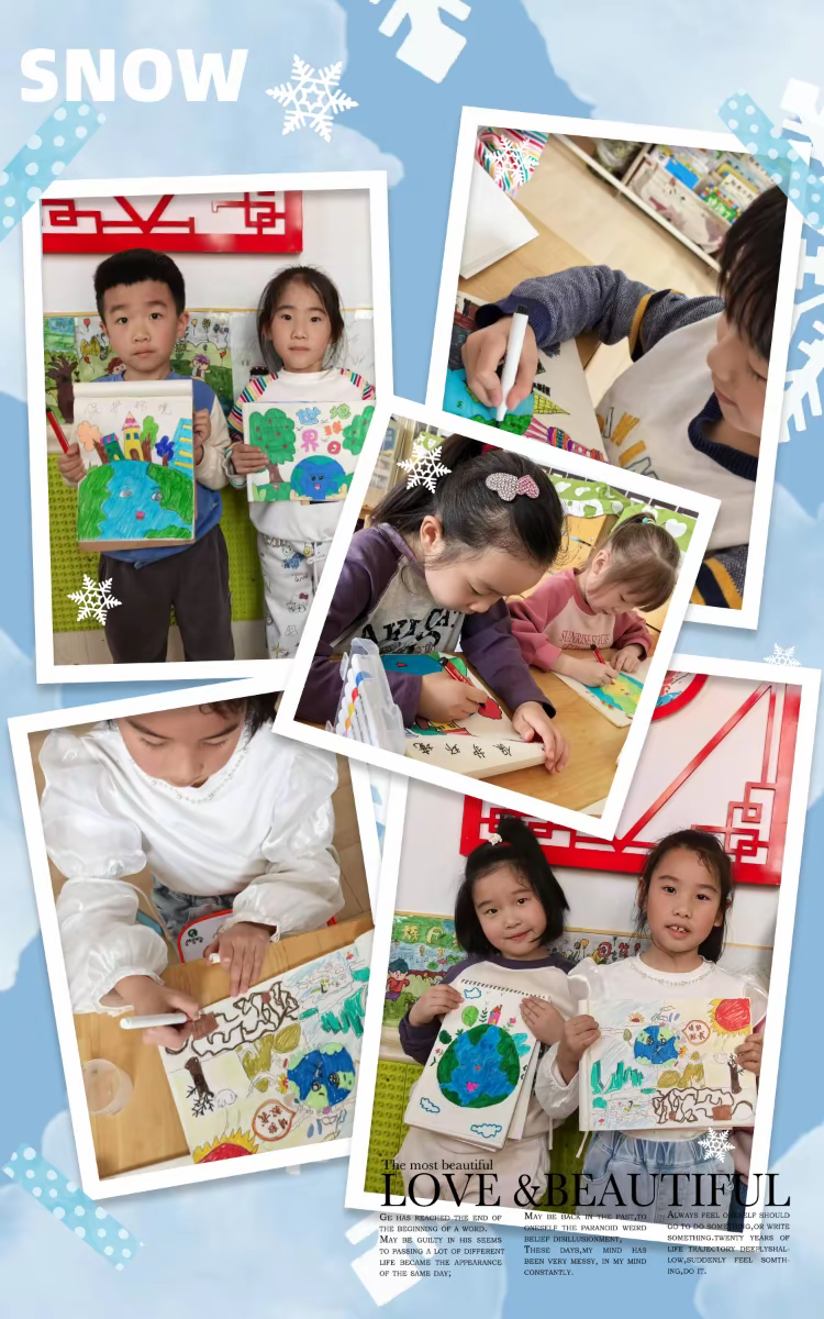 通过本次世界地球日主题周活动,志愿者们在各自的工作岗位,根据孩子们的年龄精心设计,编写学习计划与发展指南,让每一个孩子都能够了解到每一天的生活与自然环境的密切关系,让孩子们在动手动脑活动中建立“人与自然和谐共生”的生态意识,爱护环境、保护地球的种子在孩子们心中生根发芽,地球是我们唯一的家园,让我们“童”心携手,从小事做起、守护我们的能源,我们的地球,共建共享我们的美好家园!