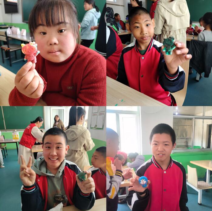 抵达学校后,校长详细地介绍了孩子们的学习与生活状况。志愿者们认真倾听,深切感受到了特教老师们的不懈付出与孩子们的纯真坚强。 随后,志愿者们为同学们分发了石膏娃娃和祝福盆栽。石膏娃娃绘画活动缓缓拉开帷幕。志愿者们与孩子们围坐一圈,小小的画笔在石膏娃娃上灵动跳跃,绘出了五彩斑斓的梦想与希望。孩子们的笑脸如同他们手中的作品一般,纯真无邪,充满了无尽的创意与想象。志愿者们耐心细致地指导,鼓励孩子们大胆表达,现场欢声笑语不断,爱与艺术的火花在这里碰撞出绚烂夺目的光芒。