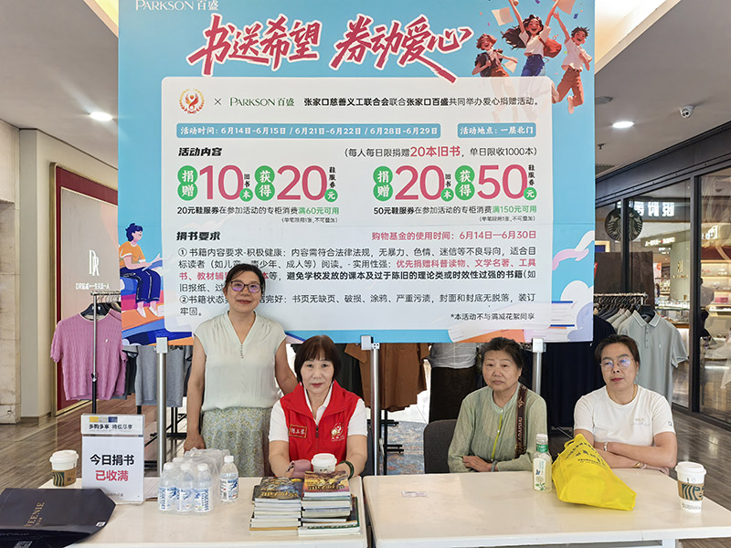 通过这次张家口慈善义工联合会联合张家口百盛共同举办“书送希望,券动爱心”爱心书籍捐赠活动,也锻炼了福德仁爱公益队的工作意志,让公益事业得到传承,让更多人认识志愿者,认可志愿者,参与志愿者,发展志愿者团队,扩大志愿者的影响力。
