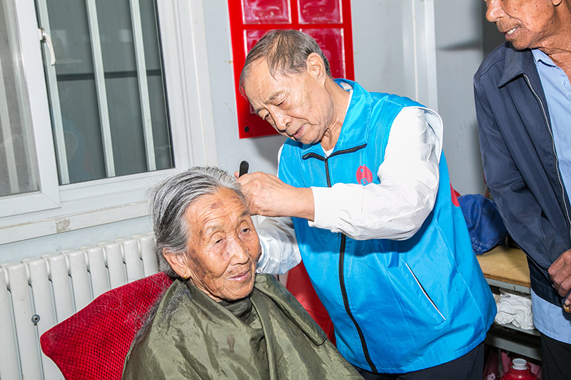 虽然天公不作美,清晨的小雨转为中雨,早八点半志愿者们准时在海纳都公交车站集合,无一人迟到请假,到达服务中心后,集体搬运张家口银行经开区科技支行为本次活动捐赠的小麦粉,大米和食用油到屋内。卸完物资党支部书记樊志勇给参加活动的志愿者分配工作,志愿者包思蒙和史焕洋为老人们们义务理发,志愿者薛秀梅随糖尿病专科医院的医护人员为老人们测量血压、测血糖,其余的志愿者分两组帮助服务中心清理圆白菜,欢声笑语中,志愿者们感受着做公益的快乐,这份快乐如同清泉般流淌在每一个人的心间,一个个蓝色身影忙碌的瞬间定格成温馨画面。活动最后,张家口银行的工作人员还为老人们讲解了反诈知识,用通俗易懂的方式为老人们送上实用的“防骗锦囊”。