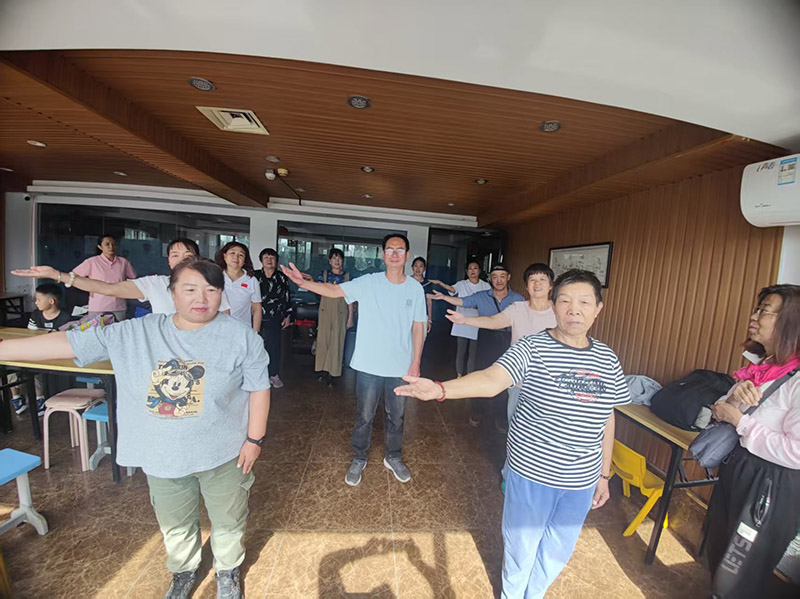 在练习环节中,大家认真地跟随着霍队长的带领摆动手臂,每一个动作都力求精准。霍队长边带领边调整大家的动作细节,在不断的练习中,大家的动作越来越整齐,也越来越到位。