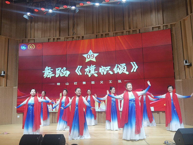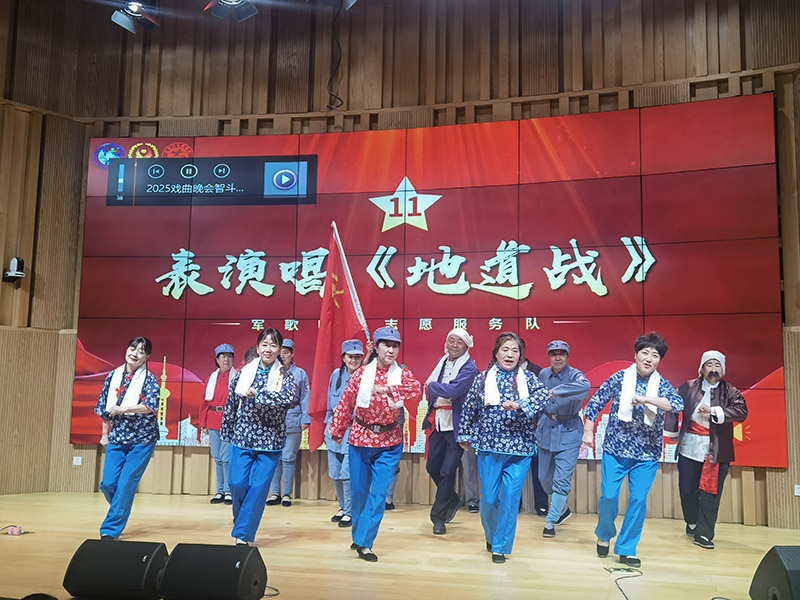 文艺演出在如潮的掌声中展开。十四个精心编排的节目如同十四幅壮阔历史画卷,以多元艺术形式展开对战争、信仰与和平的深刻诠释。文艺演出在如潮掌声中拉开帷幕,开场舞《欢聚一堂》以热情洋溢的舞步点燃全场;紧接着舞蹈《绣红旗》以柔中带刚的肢体语言传递出在黑暗中守望光明的崇高信仰,舞者手中的红旗随节奏扬起,犹如希望的火焰点燃全场;铿锵有力的京剧选段《沙家浜》再现了军民智勇抗敌的峥嵘岁月,仿佛让人听见那段充满信念与智慧的斗争;合唱《我的祖国》用雄厚歌声抒发家国情怀;手语表演《感恩的心》于无声处传递真挚情感;龙旗表演《当那天来临的时候》以恢弘场面展现民族的凝聚与觉醒;合唱《松花江上》用深情歌声回荡历史记忆;舞蹈《旗帜颂》以舒展舞姿表达崇高礼赞;快板《携手并进创辉煌》借明快节奏鼓舞人心;表演唱《地道战》生动演绎抗战智慧;舞蹈《五星红旗》舞动对祖国的热爱;朗诵《不朽》和《烽火山河》则以铿锵语调致敬英雄、铭记历史;压轴合唱《我爱你中国》将全场气氛推向高潮,深情歌声为整场演出画下感人句点,也为现场观众带来一场充满家国情怀的精神洗礼。从深沉的追思叙事到雄壮的胜利赞歌,从对革命英烈的真挚礼赞到建设新时代的坚定信念,每个节目都被浓烈的家国情怀浸透,为现场数百名身着红马甲的观众带来精神洗礼。