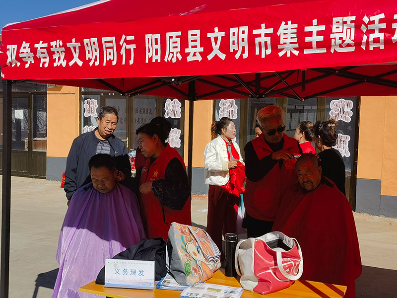 走进文明集市,映入眼帘的是整齐有序的摊位。医疗、环保、救援等单位和服务组织的工作人员热情为群众服务。歌曲《文明在哪里》《双脚踏上幸福路》等,舞蹈在希望的田野上《农村新变化》等相继登场,精彩不断,给百姓带去了文化大餐理发队热心服务,把温暖送到了百姓的心坎上,让老百姓感动不已。