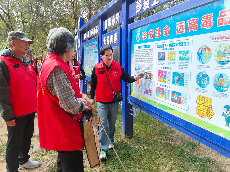 由于胜利公园还有一个禁戒毒宣传展板区,身为“张垣之光”禁戒毒宣传志愿服务队的队长,当然不会放过这样一个机会,和大家一起学习了禁戒毒相关知识,让大家深受教育。