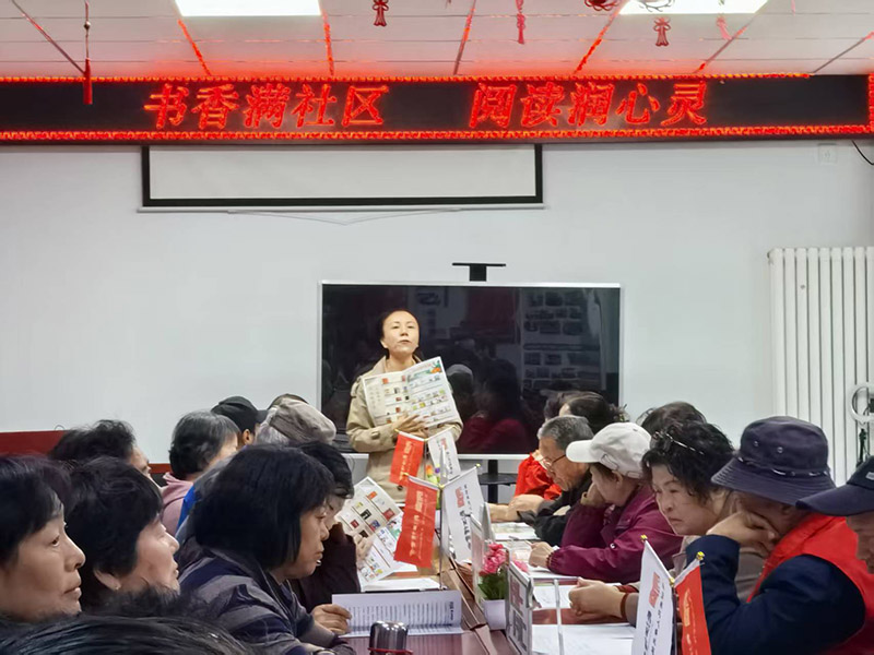 最后由桥南社区闫丹丹书记讲话,鼓励福德仁爱公益队的志愿者和社区居民投入到多读书,读好书的行列中。为建设文明、和谐的社区添砖加瓦,做一名优秀的志愿者。