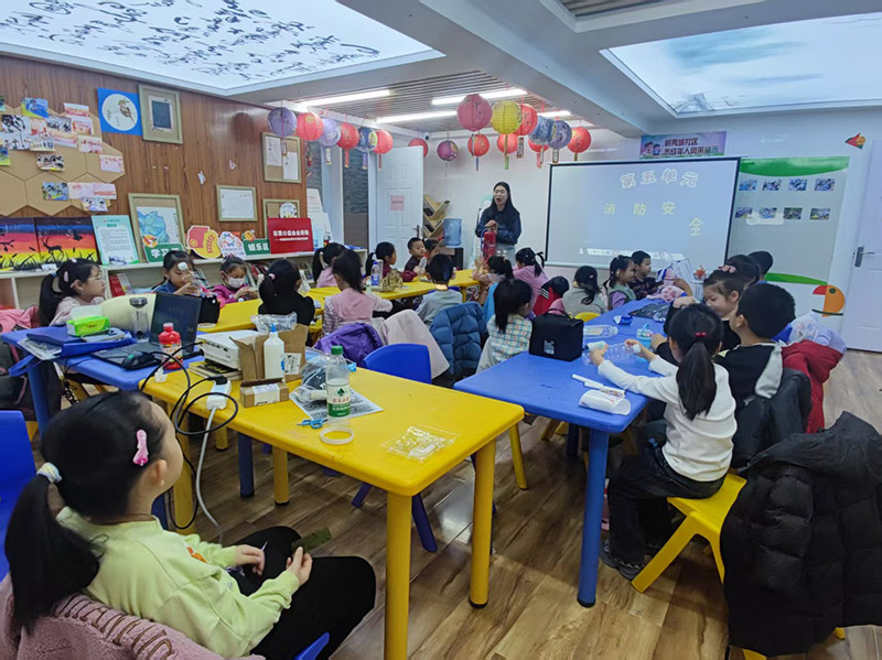 活动开始,志愿者们通过生动的图片和有趣的问答,为孩子们打开了一扇通往消防知识世界的大门。然后耐心讲解了常见的消防标志、基础的消防工具及其用途,让孩子们明白了防火意识的重要性,也掌握了基本的自救常识。