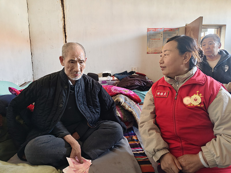 或许是感受到了这份跨越寒冬的善意,平日里沉默寡言的王在山老人,双手紧紧攥着爱心款,眼眶微微泛红,嘴唇动了动,用含糊不清却无比真诚的语气,一遍又一遍地重复着:“谢谢你们…… 谢谢你们还惦记着我……” 简单的话语,藏着老人满心的感动,也让在场的每一位志愿者都心头一暖——所有的奔波与付出,在这一刻都有了最温暖的回响。