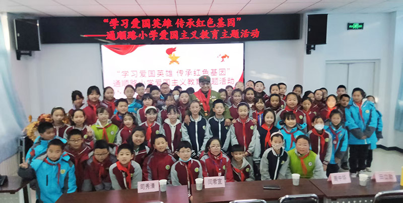 12月24日,为纪念长津湖战役胜利75周年,厚植青少年家国情怀,由关工委的统一计划,桥西区通顺路小学组织英雄中队的同学,聘请了福德仁爱公益队的爱国主义教育负责人、通顺路小学的校外辅导员、福德仁爱公益队的党员志愿者走进通顺路小学,开展“缅怀革命先烈 守护盛世平安”主题爱国主义教育活动,为孩子们带来了一堂别开生面的思政课。张家口市关工委一级主任科员闫君宜、桥西区委组织部二级主任科员司秀清、中国人民解放军第二五一医院主任军医、通小校外辅导员李书庭、张家口慈善义工联合会助残专委会宣传部长周中华、张家口市关工委委员通小校外辅导员田立勋、通顺街小学校长韩雅静、副校长陈建博、大队辅导员吴洁珊参加了这次活动。