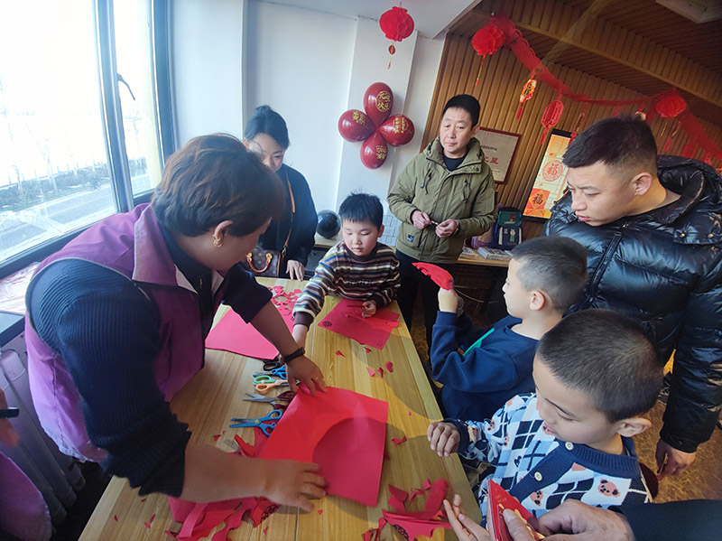 孩子们在家长的陪同下做了很多活动,在做粘福字活动时,孩子们把粘力棒用力的甩出,都想粘到更多的福字,领到更多的奖品;捏饺子活动中,小手捏出形态各异的“元宝”和“花朵”,创意十足;猜灯谜环节笑声不断,每有孩子和家长灵光一闪猜中谜底时,周围便响起阵阵欢呼;剪福字的桌前最是安静,家长和孩子们非常仔细,活动室里只闻纸声沙沙,当一幅幅火红的“福”字展开时,每个人的脸上都洋溢着成就感与喜悦。活动现场暖意流动,欢声笑语交织成最动听的新年序曲。可见,这些特殊的孩子们平日里在老师的陪伴和教导下成长了很多,也收获了很多的欢乐与技巧。