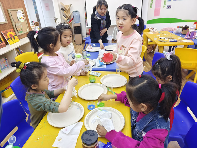实验开始啦!我先把矿泉水瓶的底部剪掉,把纱布蒙在瓶口,用皮筋紧紧扎牢。接着,我蘸了蘸紫色的颜料水,深吸一口气,轻轻对着瓶身吹去——哇!一大串亮晶晶的泡泡像一条彩色的小龙,从纱布里“钻”了出来,在阳光下闪着紫莹莹的光。旁边的小伙伴们也纷纷动手,有的吹出了粉嘟嘟的泡泡龙,有的吹出了金灿灿的长龙,活动室里瞬间飘满了彩色的泡泡,笑声和惊呼声此起彼伏。
