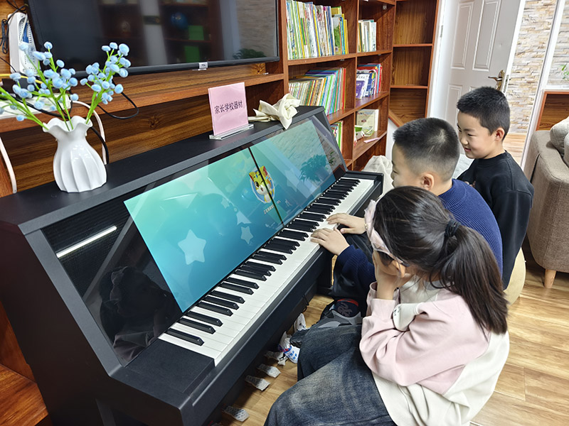 课堂不再是安静的听讲,而是被分成了钢琴、书写、象棋三个热闹的赛场。智能钢琴前,几个孩子的小手在琴键上欢快跳跃,流畅的旋律伴着屏幕里的动画节奏流淌出来,引来周围小伙伴的阵阵掌声;书写区的孩子们握着笔,在纸上专注地书写,比拼着速度与工整,志愿者老师在一旁轻声指点,不时为孩子们的进步露出欣慰的笑容;象棋桌前更是气氛热烈,小棋手们眉头紧锁、步步为营,每一步落子都带着不服输的劲儿,赢了的孩子欢呼雀跃,输了的也笑着摆手:“下次我肯定能赢你!”