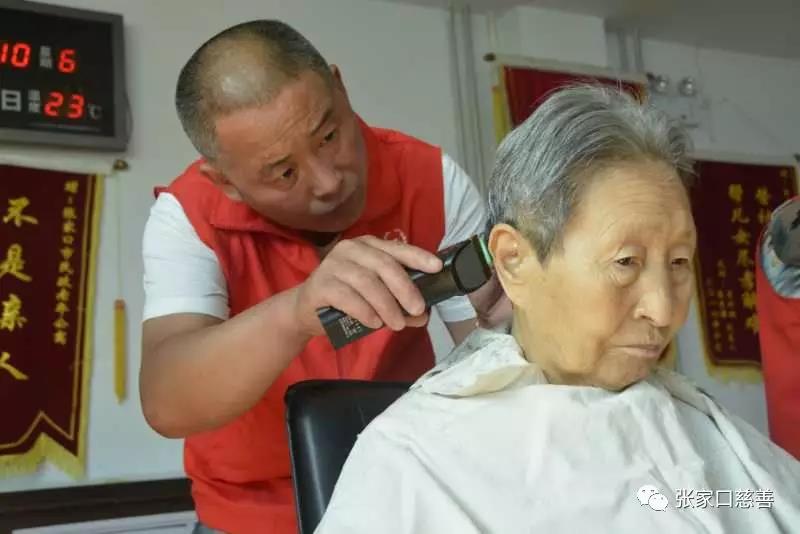 并且进行了详细的阐述。大家听得非常认真、仔细!在讲课的同时我们的美发师志愿者们到老人们居住的房间亲自给行动不便的老人剪发。美发师志愿者们用娴熟的技艺,和仔细认真的工作状态。感动了许多前来参加理发活动的老年人。他们表示感谢党、感谢社会,感谢我们这些无私奉献的志愿者!看到他们喜悦的面容我们的志愿者们也是很欣慰。