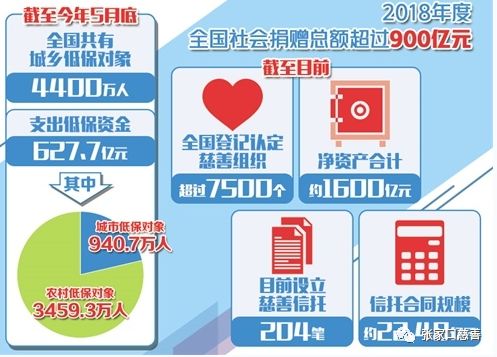 7月29日,民政部举行第三季度例行新闻发布会。民政部新闻发言人贾维周表示,截至今年5月底,全国共有城乡低保对象4400万人,支出低保资金627.7亿元。脱贫攻坚兜底保障成效明显。据介绍,2018年度,全国社会捐赠总额超过900亿元;今年上半年,全国销售福利彩票977.57亿元,筹集公益金281.89亿元。