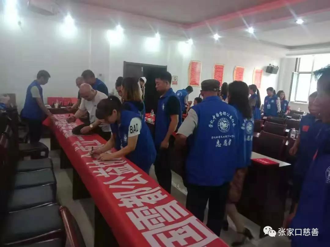 会后大家在会长常明江的带领下和崇礼区人大副主任靳建斌、张家口慈善义工联合会秘书长赵小军、崇礼慈善义工联合会张华会长对协会及区直有关领导进行了拍照留念,记录了这激动人心的一刻。而且会员自发的,在一面横幅上签下了自己的名字,大家都希望一直留在这个公益的大家庭里。 |