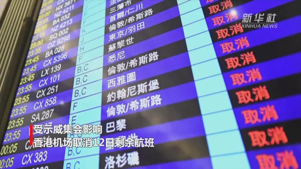 香港机场取消12日剩余航班;