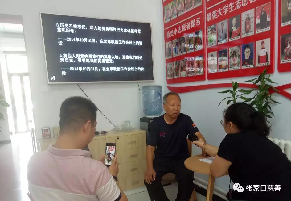 河北省卫生健康委员会、中共河北省委老干部局、河北省广播电视局、河北省体育局、河北省妇女联合会、河北广播电视台六家单位主办了河北省第六届“中老年健康之星”评选活动,河北广播电视台从新闻报道中了解到张家口慈善义工联合会顾问常久,退休后致力于张家口市的志愿服务,为创建文明城市做出积极的贡献。2019年8月13日,河北广播电视台吕飞龙、赵哲专程从石家庄到张家口,在张家口慈善义工联合会采访联合会顾问常久和党建指导员冀桂宝。