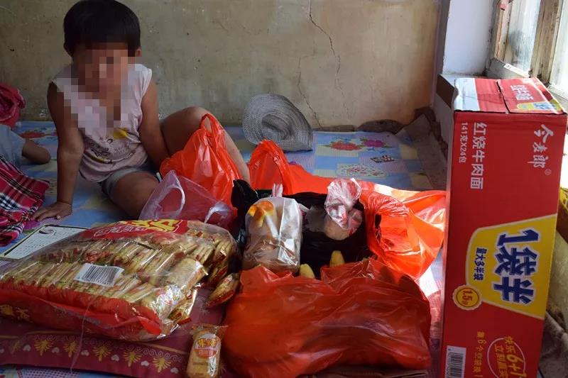志愿者为孩子们带去饼干、面包、蛋糕、薯片、方便面、香蕉等零食(善款来自众多爱心人士捐助)。