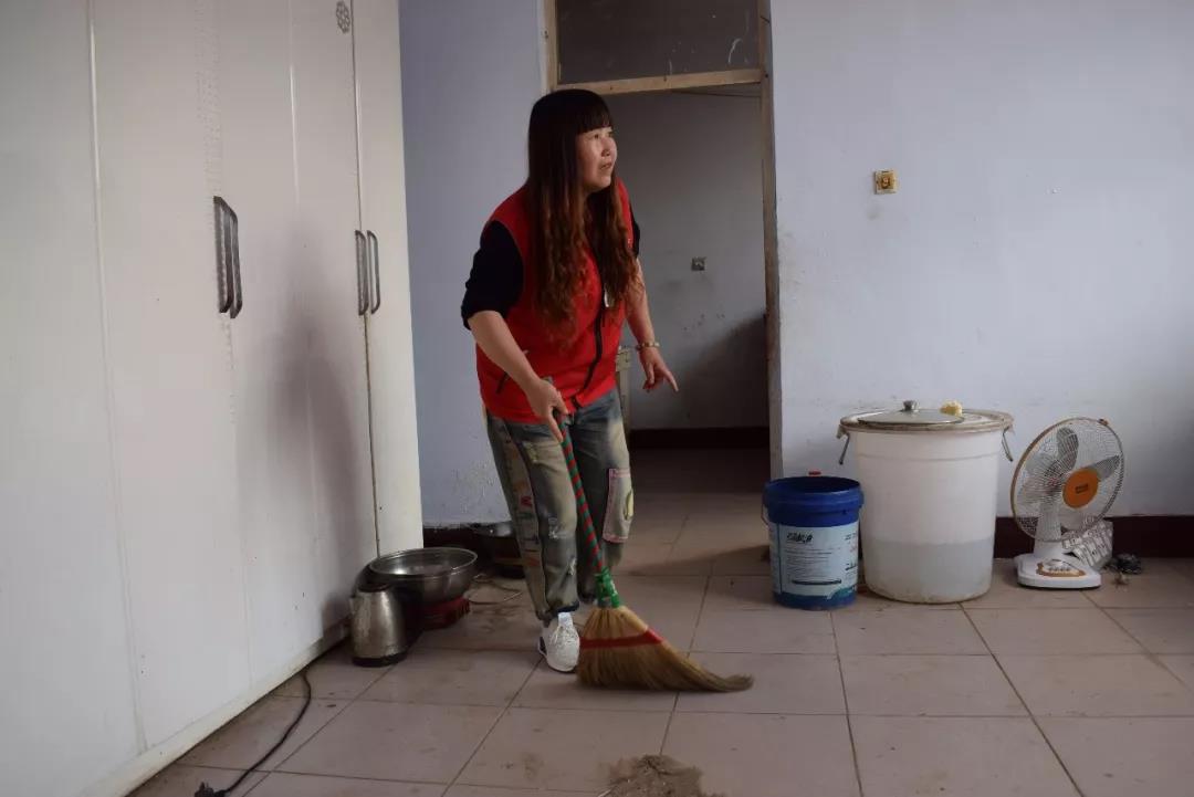 看到这样心酸的家庭,看到令人心疼的孩子们,看到这个坚强而伟大的父亲,志愿者没有休息片刻,便帮着做起家务来,整理衣服、扫地、拖地、修理坏掉的柜子......