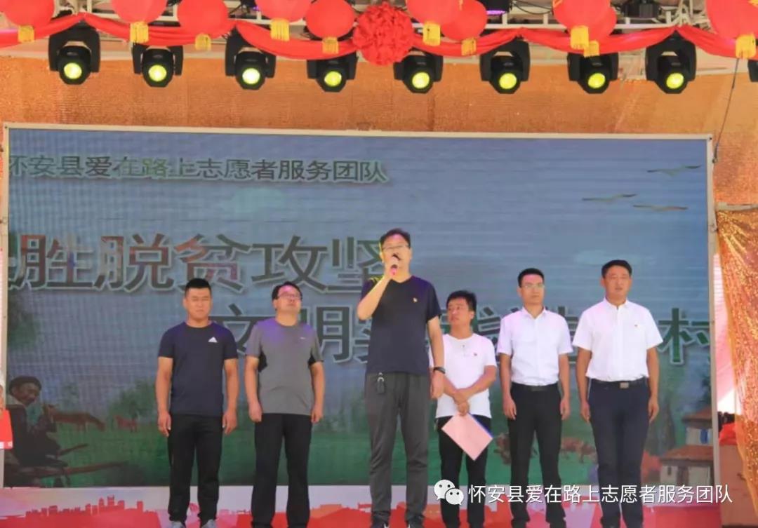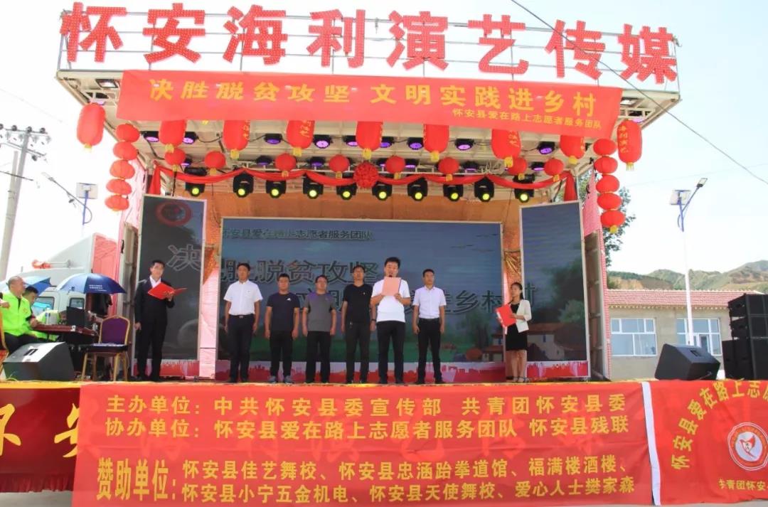 2019年8月18日,由中共怀安县委宣传部、共青团怀安县委主办,怀安县爱在路上志愿者服务团队、怀安县残联协办的“决胜脱贫攻坚 · 文明实践进乡村” 扶贫扶志系列活动,第二站走进王虎屯乡井沟村,以助力脱贫攻坚,推进农村精神文明建设高质量发展,打通宣传、教育、服务群众“最后一公里”,夯实农村宣传思想教育阵地。共青团怀安县委书记张伟、共青团怀安县委副书记冯会东、王虎屯乡李海峰乡长、副乡长康文军、包村单位县交通局李东副局长参加了今天的慰问活动。