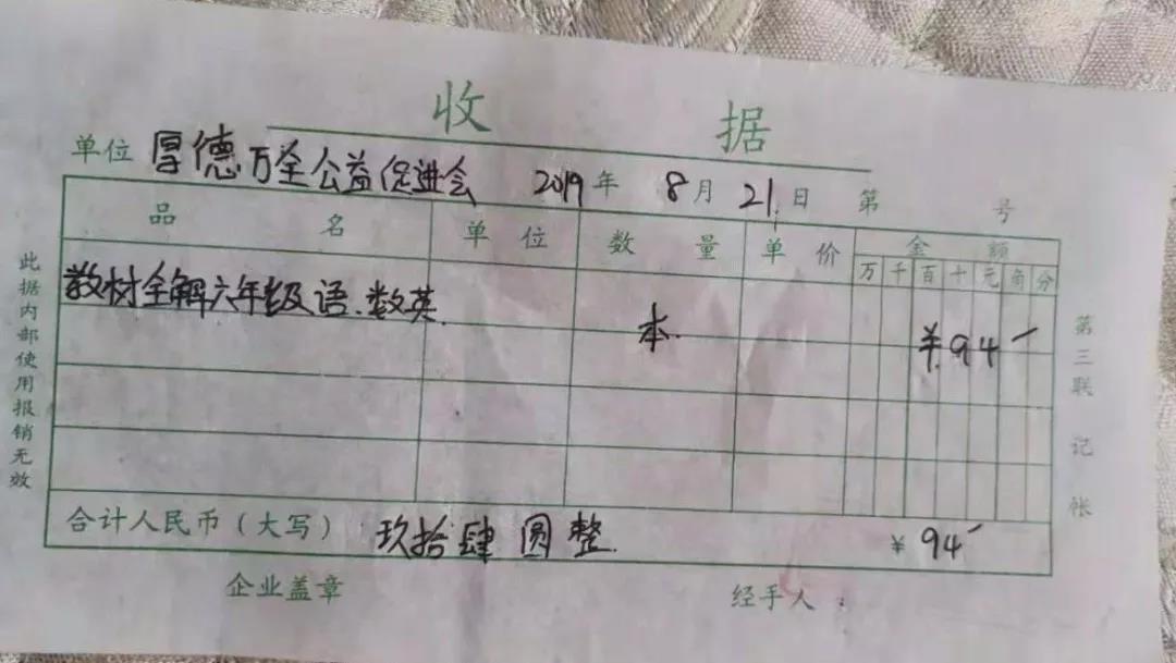 小学教材全解94元,善款来自日行一善